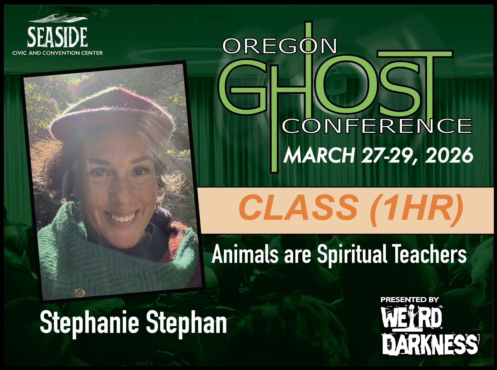 General Admission Tickets are $20 and are good for the entire weekend. General Admission Tickets can be purchased through our Online Box Office or at the Oregon Ghost Conference Box Office at the Seaside Civic and Convention Center: Friday, March 27th-Sunday, March 29th.