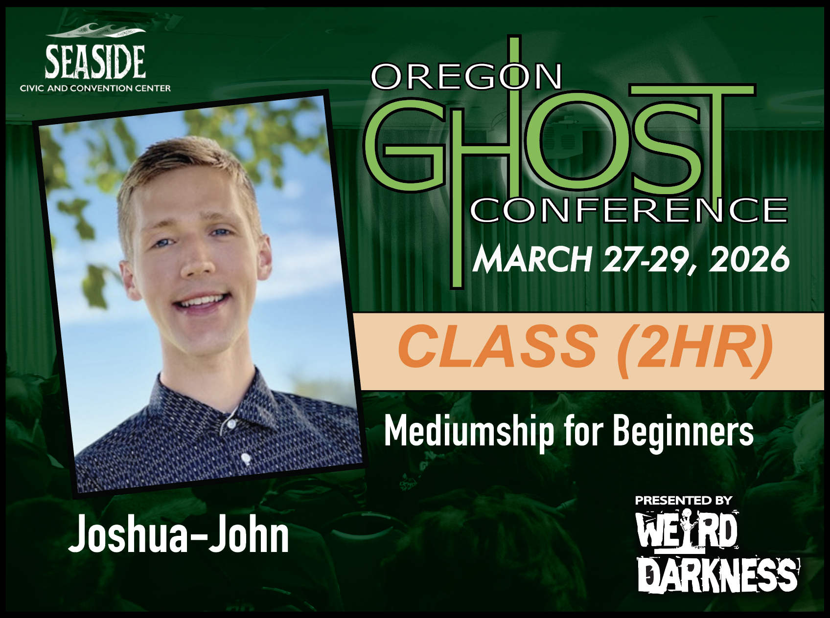 | | | | | | | | Are you curious about your intuitive gifts and feel called to connect with Spirit? This beginner-friendly mediumship class is designed to gently introduce you to the foundational principles of spirit communication in a safe, supportive environment. Whether you’re just starting out or have had unexplainable experiences you want to understand, this class will help you build trust in your abilities. Together, we’ll explore the basics of mediumship, including: • The difference between psychic and mediumistic abilities • How to raise your vibration and blend with Spirit • The role of intention, ethics, and spiritual protection • Practical exercises to awaken your intuitive senses (clairvoyance, clairaudience, etc.) • Simple techniques to begin receiving messages from loved ones in Spirit You don’t need prior experience—just an open heart and a willingness to explore. This is a nurturing space to ask questions, practice safely, and discover your natural connection to the Spirit World. | | | | | | | | Class Outcomes: | | | | | | | | Together, we’ll explore the basics of mediumship, including: • The difference between psychic and mediumistic abilities • How to raise your vibration and blend with Spirit • The role of intention, ethics, and spiritual protection • Practical exercises to awaken your intuitive senses (clairvoyance, clairaudience, etc.) • Simple techniques to begin receiving messages from loved ones in Spirit | | | | | | | | Instructor Biography Page | | | | | | | | | | | | | | | | | | | | | | OGC Ticketing Tips: | | | | | | Before purchasing tickets for Classes, Evening Events, Investigtions or Ghost Tours, we highly recommend that you make a plan by looking at the 2026 Schedule so you can decide how you want to spend your time and to make sure you don’t purchase tickets for classes or events that overlap or cause scheduling conflicts. Please plan carefully because there are NO CASH REFUNDS. Individual tickets for classes, tours, investigations and events are available from each class or event page and can also be found through the 2026 Schedule or the Online Box Office. In addition to purchasing individual tickets to classes, tours or events, you will also need to purchase a General Admission Ticket. General Admission Tickets are $20 and are good for the entire weekend. General Admission Tickets can be purchased through our Online Box Office or at the Oregon Ghost Conference Box Office at the Seaside Civic and Convention Center: Friday, March 27th-Sunday, March 29th. General Admission tickets are good for admission to the Vendors Area and all Main Stage Speaker presentations for all three days of the Oregon Ghost Conference. Sunday Only General Admission Tickets are $10 and can only be purchased in person at the Oregon Ghost Conference Box Office at the Seaside Civic and Convention Center, Sunday, March 29th ONLY. | | | | | | | | | Mediumship for Beginners | | | 2hr Class Registration: $25.00 | | | | | | | | | | | | | | | | |