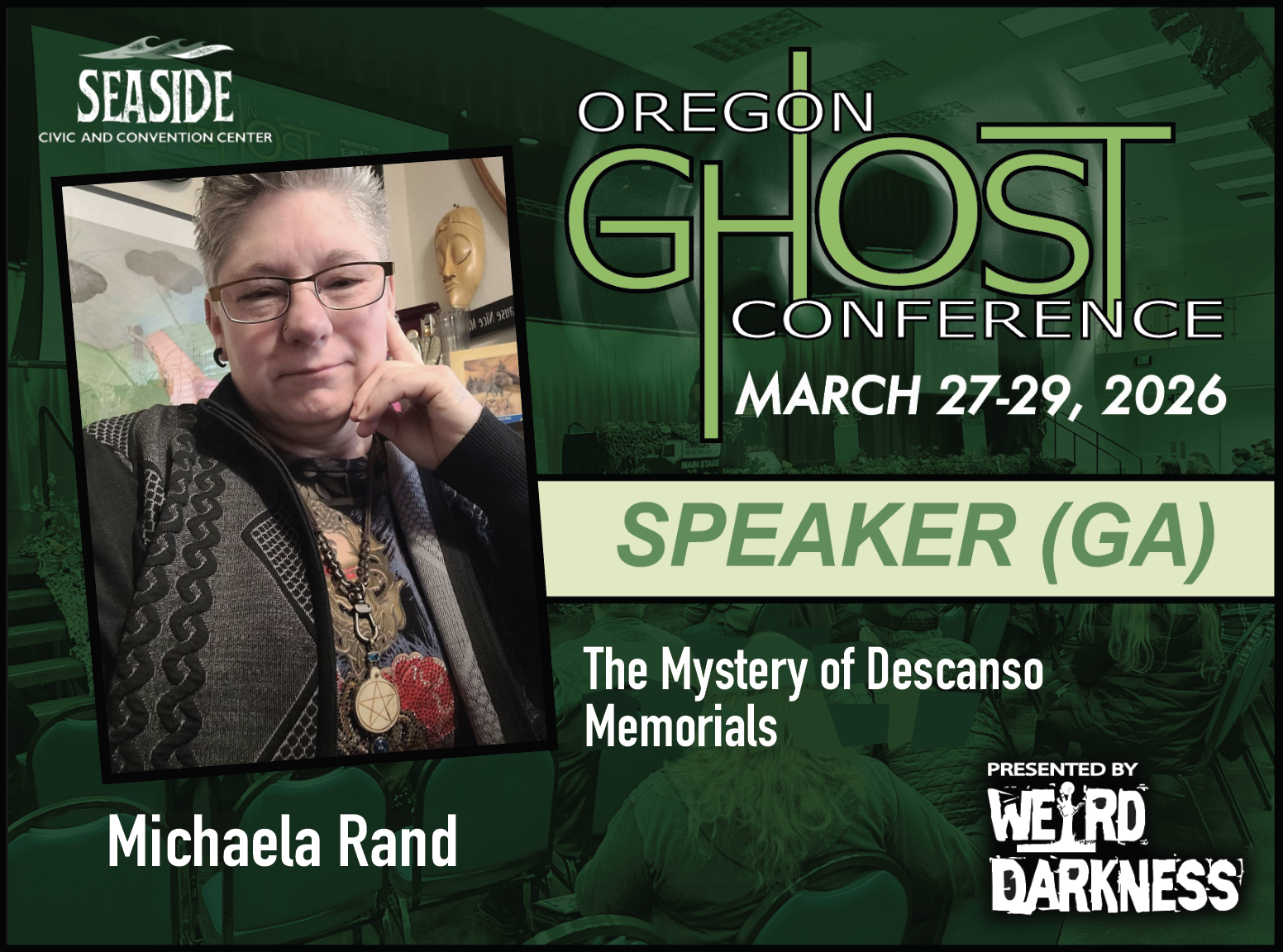 General Admission Tickets are $20 and are good for the entire weekend. General Admission Tickets can be purchased through our Online Box Office or at the Oregon Ghost Conference Box Office at the Seaside Civic and Convention Center: Friday, March 27th-Sunday, March 29th.