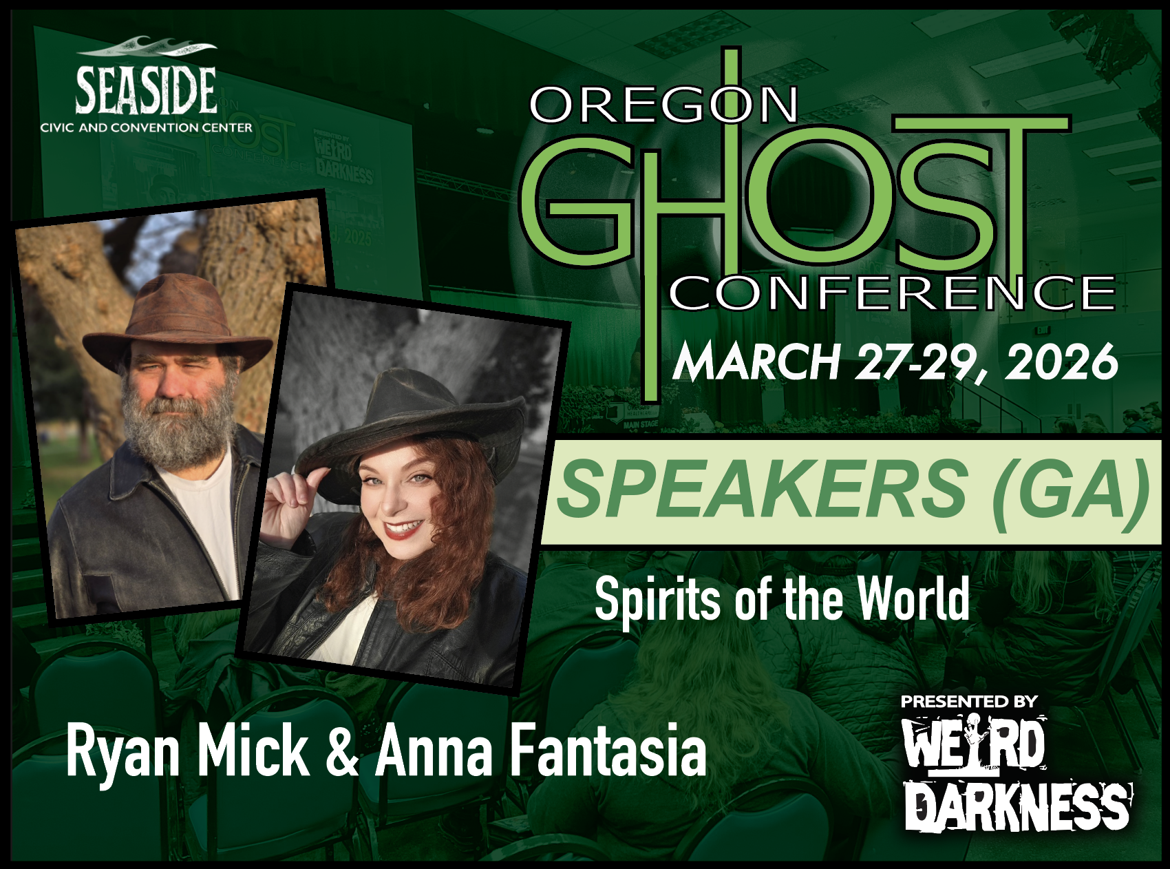 General Admission Tickets are $20 and are good for the entire weekend. General Admission Tickets can be purchased through our Online Box Office or at the Oregon Ghost Conference Box Office at the Seaside Civic and Convention Center: Friday, March 27th-Sunday, March 29th.