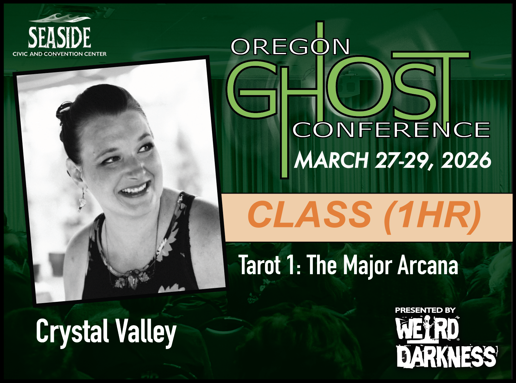 General Admission Tickets are $20 and are good for the entire weekend. General Admission Tickets can be purchased through our Online Box Office or at the Oregon Ghost Conference Box Office at the Seaside Civic and Convention Center: Friday, March 27th-Sunday, March 29th.
