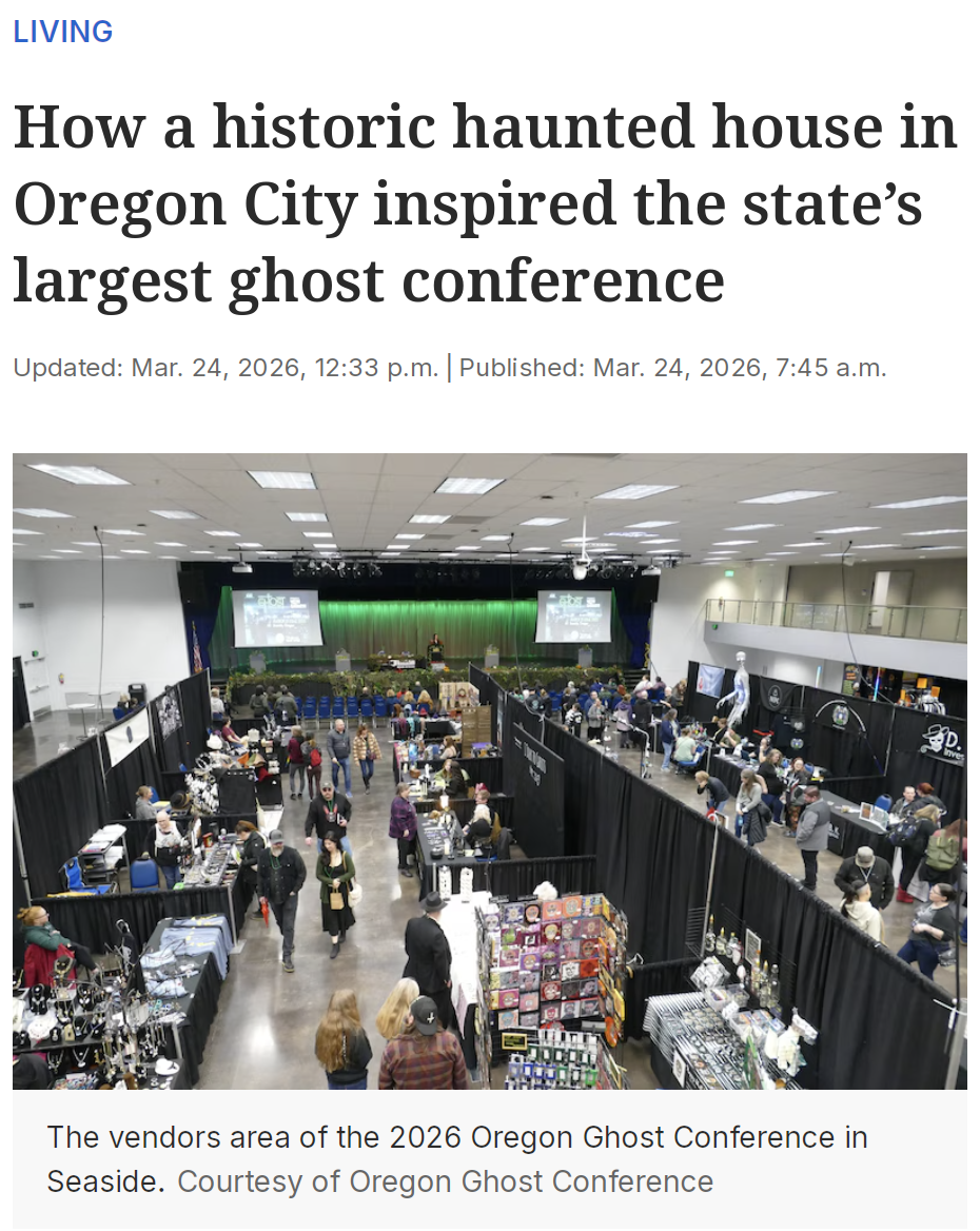 The 14th Annual Oregon Ghost Conference will take place will take place March 27-29, 2026 at the Seaside Civic and Convention Center in Seaside, Oregon. The Oregon Ghost Conference is the Northwest's largest paranormal convention and attracts visitors from all across the west coast and beyond. We have a jam packed weekend filled with speakers, classes, tours, investigations and so much more. Join us for a weekend of ghosts at the coast! Attendees will connect with and learn from some of the top paranormal experts in our area.