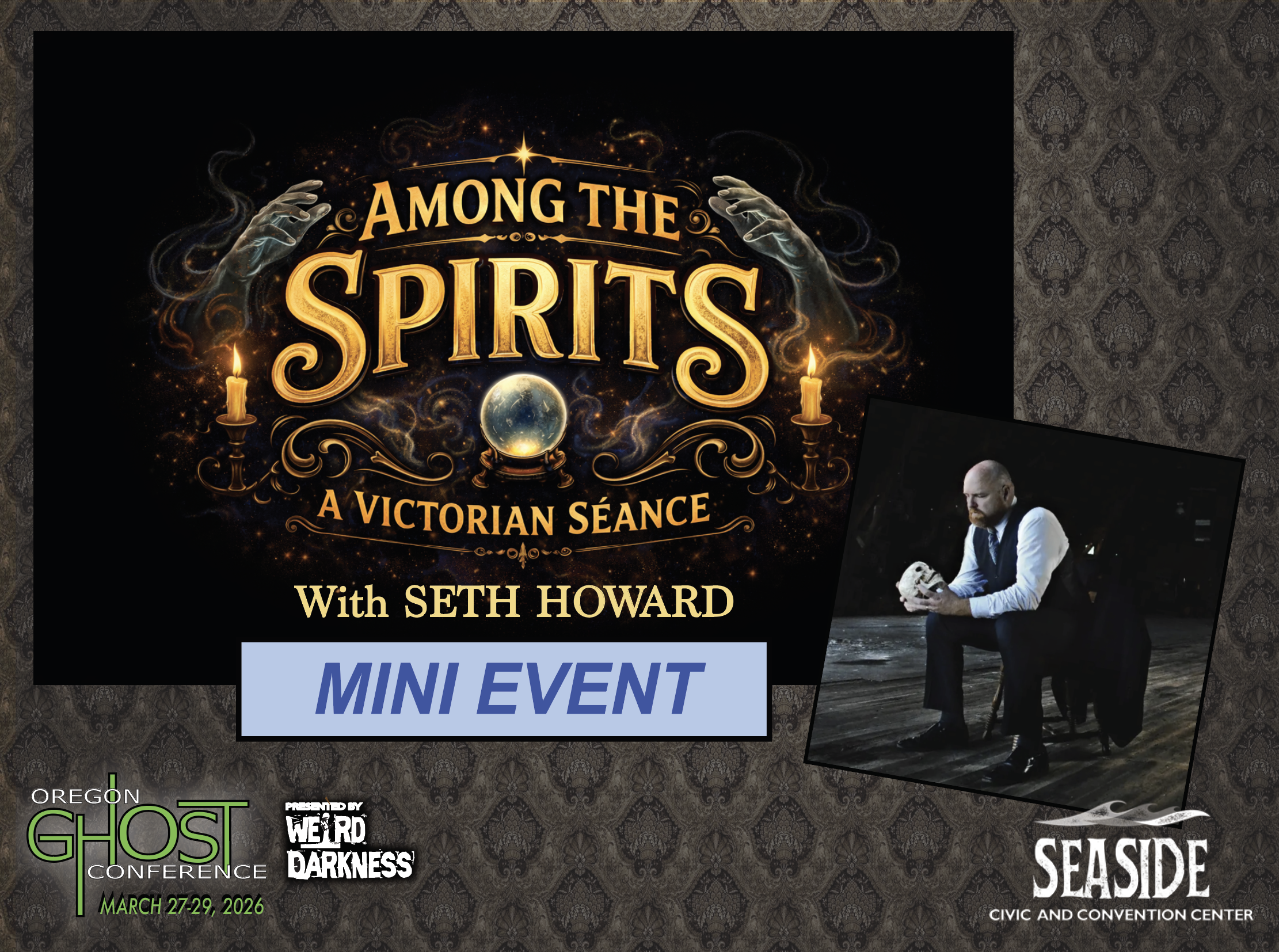 General Admission Tickets are $20 and are good for the entire weekend. General Admission Tickets can be purchased through our Online Box Office or at the Oregon Ghost Conference Box Office at the Seaside Civic and Convention Center: Friday, March 27th-Sunday, March 29th.