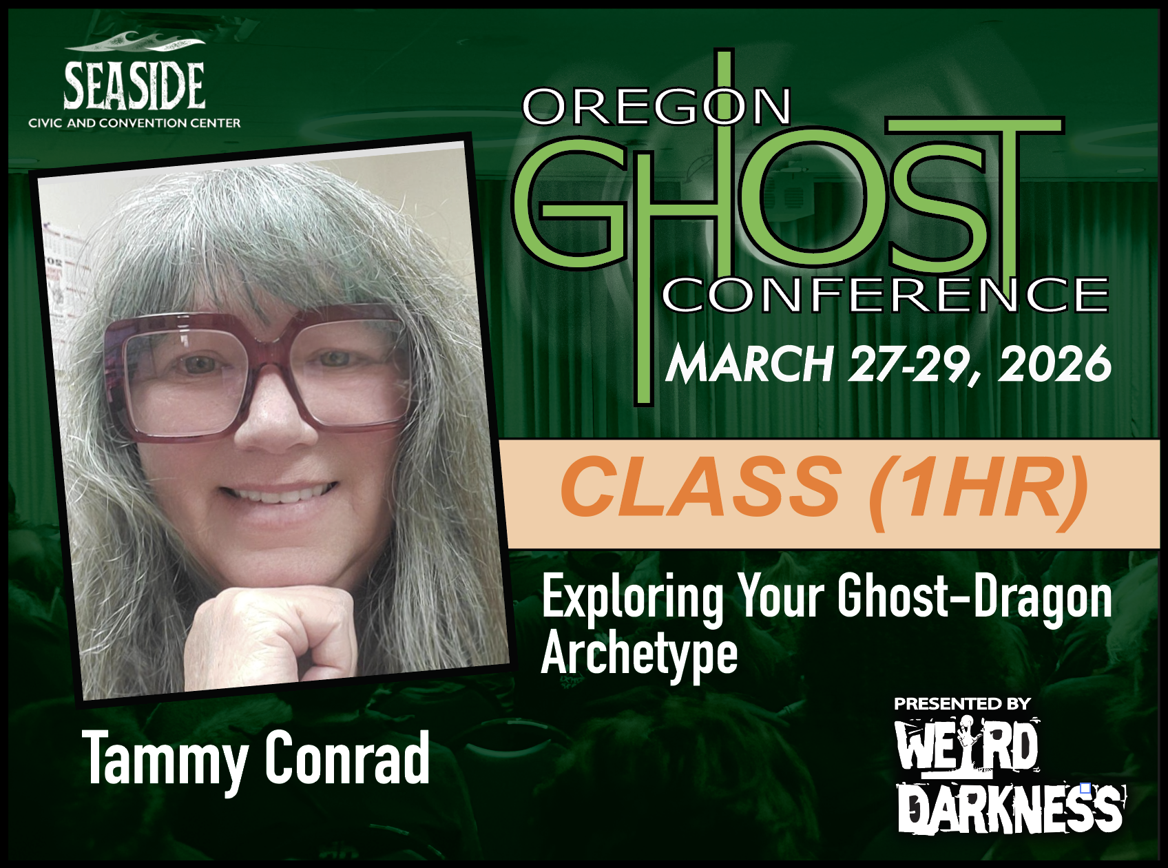 General Admission Tickets are $20 and are good for the entire weekend. General Admission Tickets can be purchased through our Online Box Office or at the Oregon Ghost Conference Box Office at the Seaside Civic and Convention Center: Friday, March 27th-Sunday, March 29th.