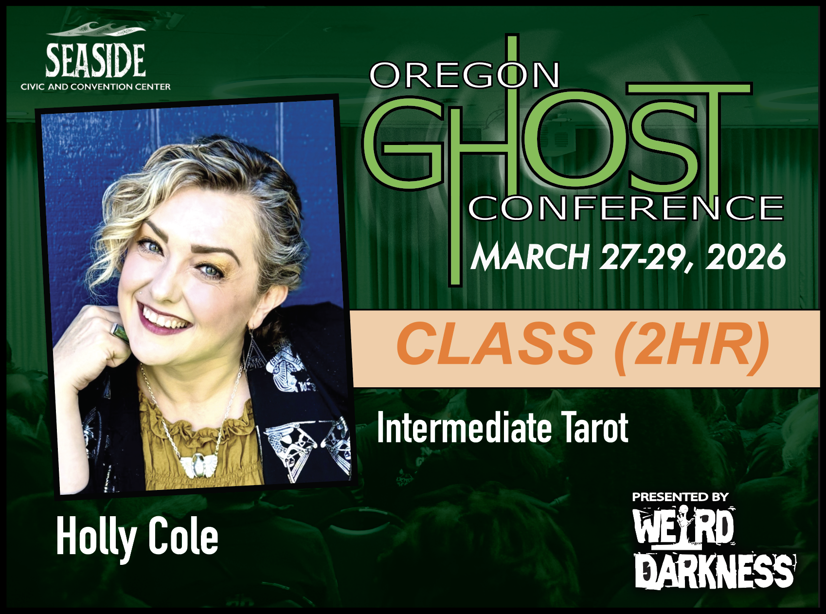 General Admission Tickets are $20 and are good for the entire weekend. General Admission Tickets can be purchased through our Online Box Office or at the Oregon Ghost Conference Box Office at the Seaside Civic and Convention Center: Friday, March 27th-Sunday, March 29th.