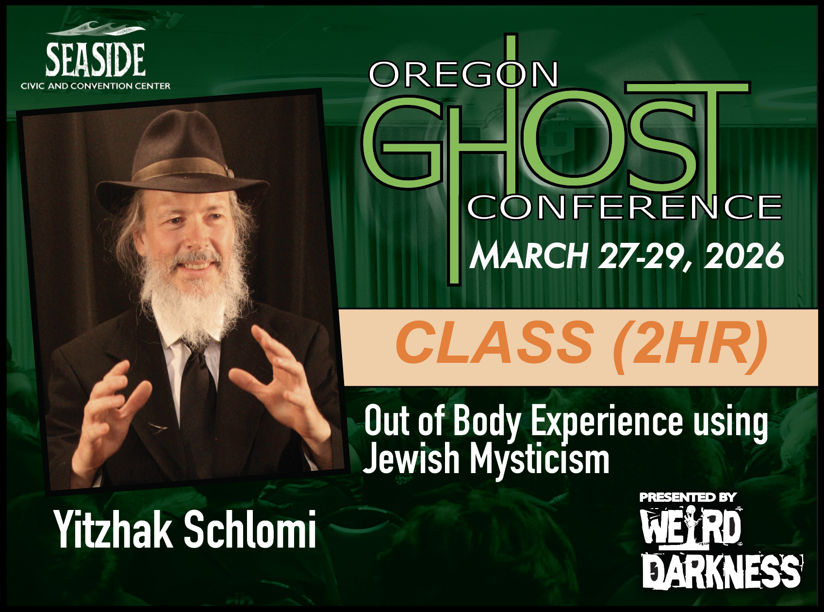 General Admission Tickets are $20 and are good for the entire weekend. General Admission Tickets can be purchased through our Online Box Office or at the Oregon Ghost Conference Box Office at the Seaside Civic and Convention Center: Friday, March 27th-Sunday, March 29th.