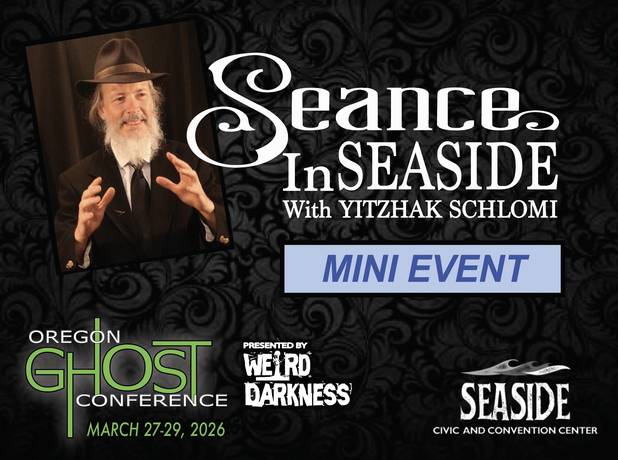 General Admission Tickets are $20 and are good for the entire weekend. General Admission Tickets can be purchased through our Online Box Office or at the Oregon Ghost Conference Box Office at the Seaside Civic and Convention Center: Friday, March 27th-Sunday, March 29th.