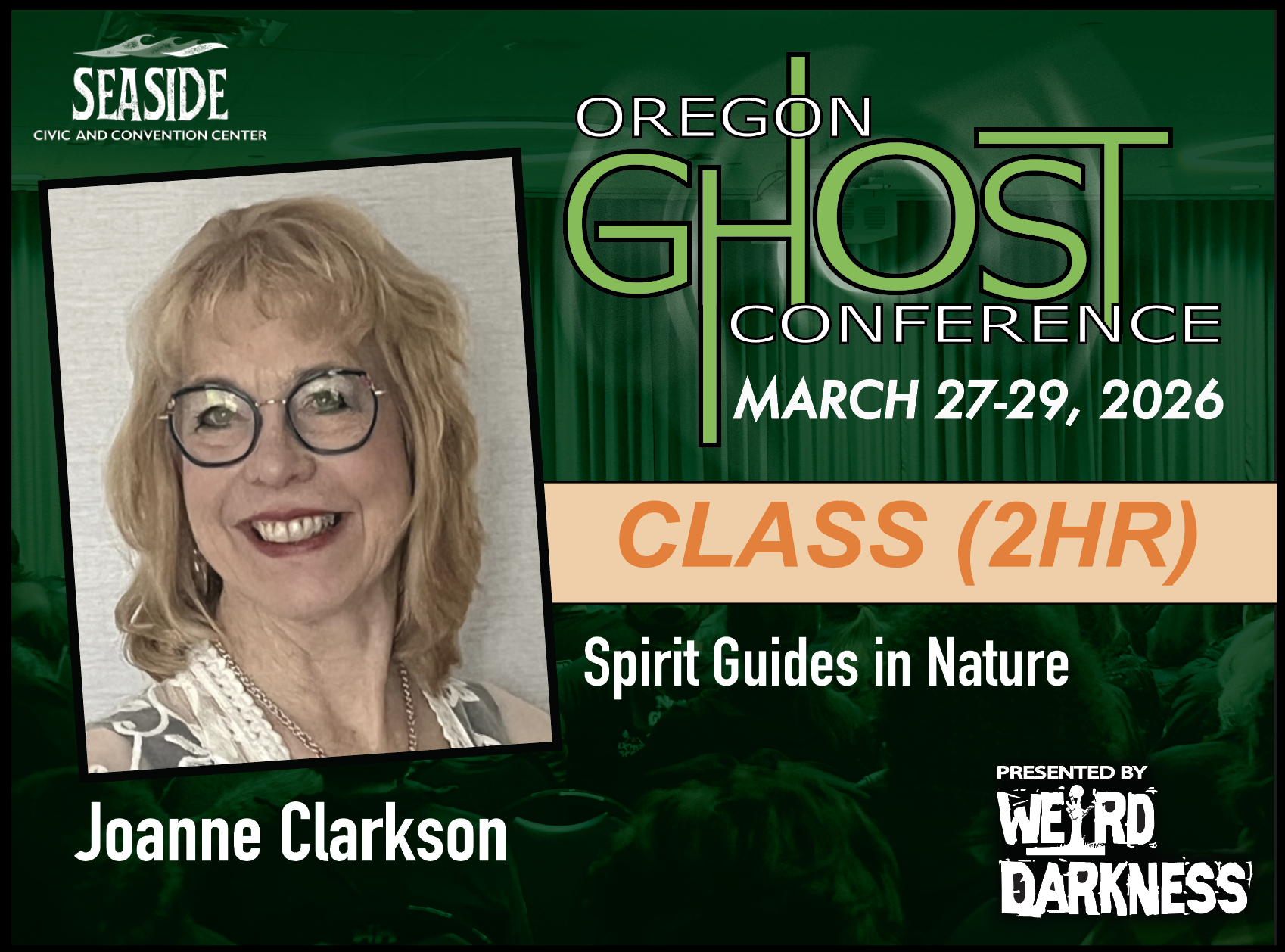 General Admission Tickets are $20 and are good for the entire weekend. General Admission Tickets can be purchased through our Online Box Office or at the Oregon Ghost Conference Box Office at the Seaside Civic and Convention Center: Friday, March 27th-Sunday, March 29th.