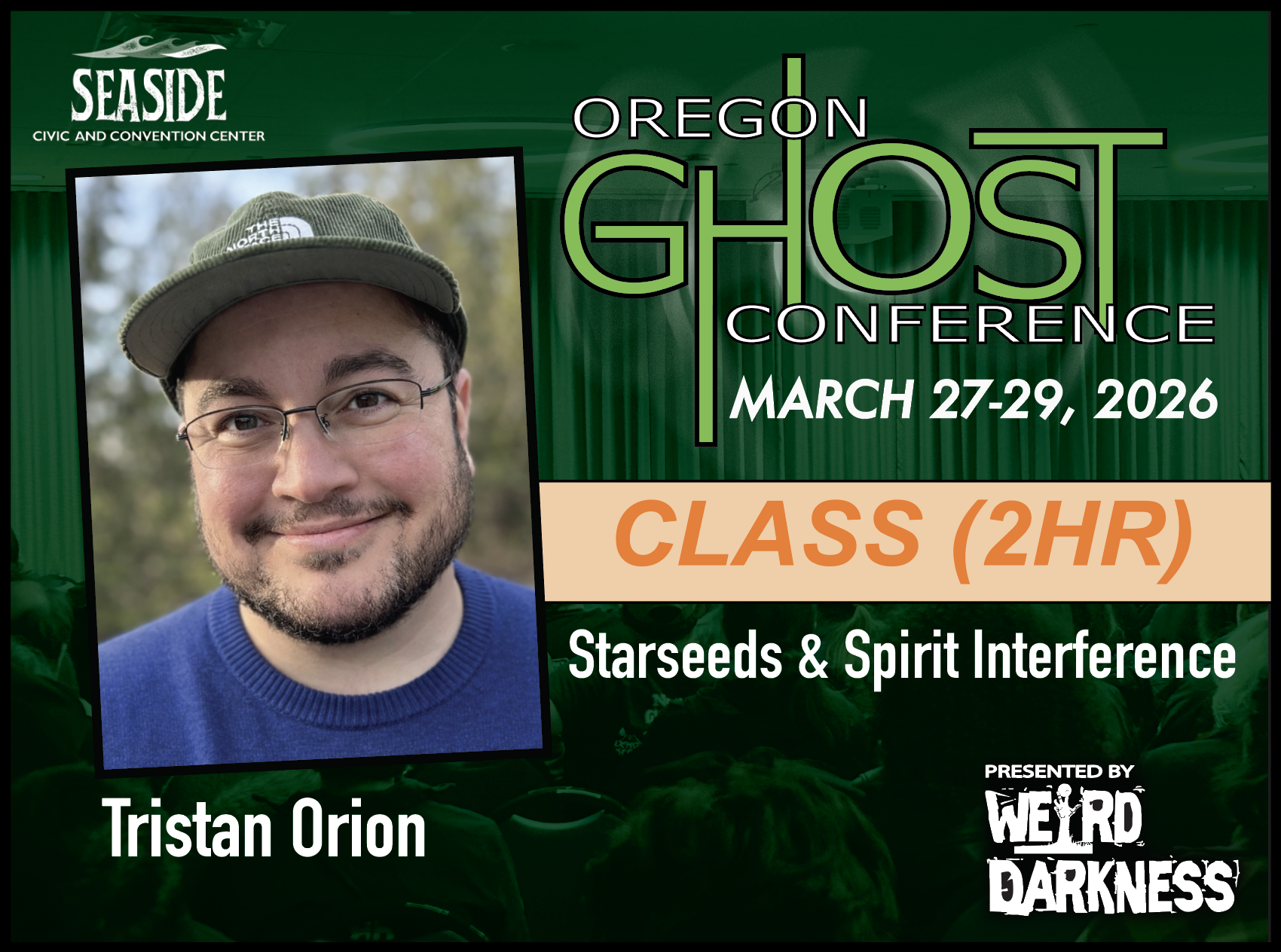 General Admission Tickets are $20 and are good for the entire weekend. General Admission Tickets can be purchased through our Online Box Office or at the Oregon Ghost Conference Box Office at the Seaside Civic and Convention Center: Friday, March 27th-Sunday, March 29th.
